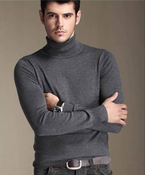 ★紳士用/冬暖か着心地の良いカシミヤ混・タートルネックセーター S グレー★
