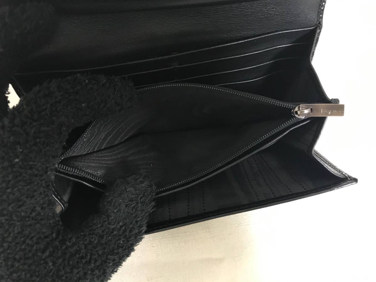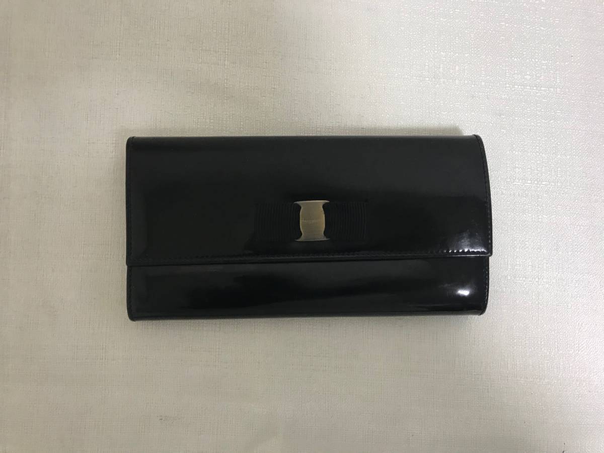 商品名:本物フェラガモFERRAGAMO本革エナメルレザーリボンヴァラ金具二つ折り札入れサイフ長財布旅行黒ブラックトラベルレディースメンズ