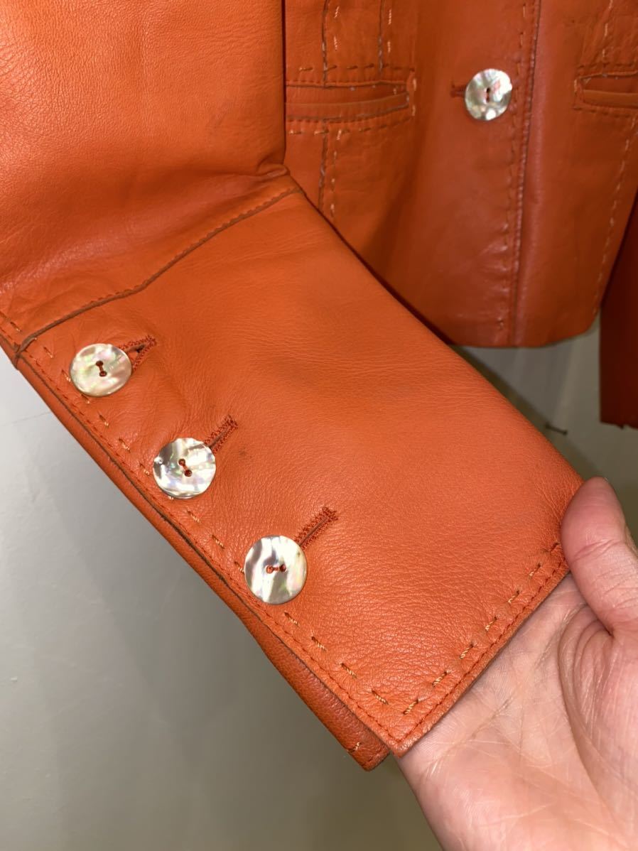 淡いオレンジにピンクを少し混ぜたようなきれいな発色でレザーとは思えないほど非常に柔らかな質感です。