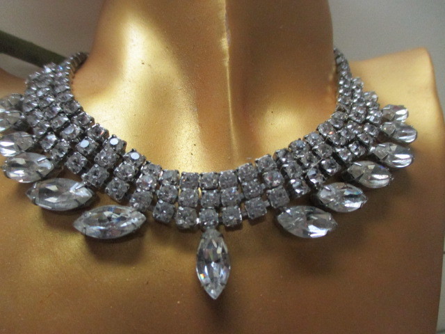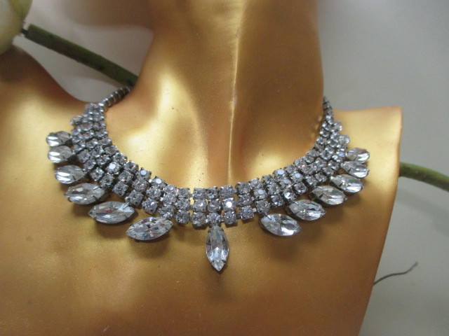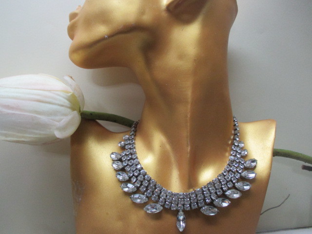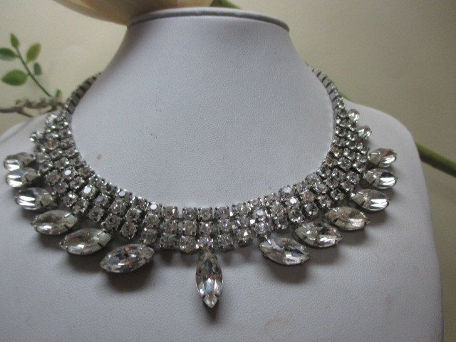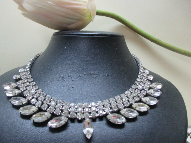★ニューヨーク★WEISS社 ヴィンテージ大ぶり♪華やかフェミニン♪クリアグラスネックレス ウェディング&カジュアル