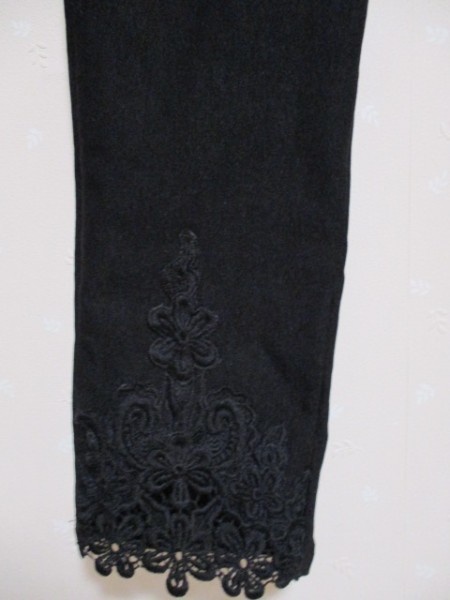★ FASHION MESSAGE ★ 裾レース スリムパンツ レディスM 黒 (10325)