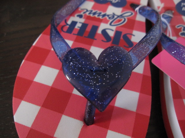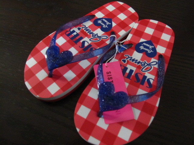 jenni ジェニィ ハート付ビーチサンダル 赤チェック ネイビー LL 23-24センチ