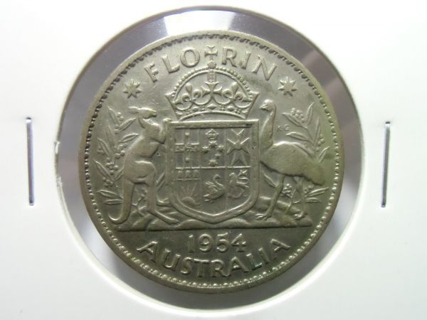 オーストラリア フローリン銀貨 1954年 割れエラー