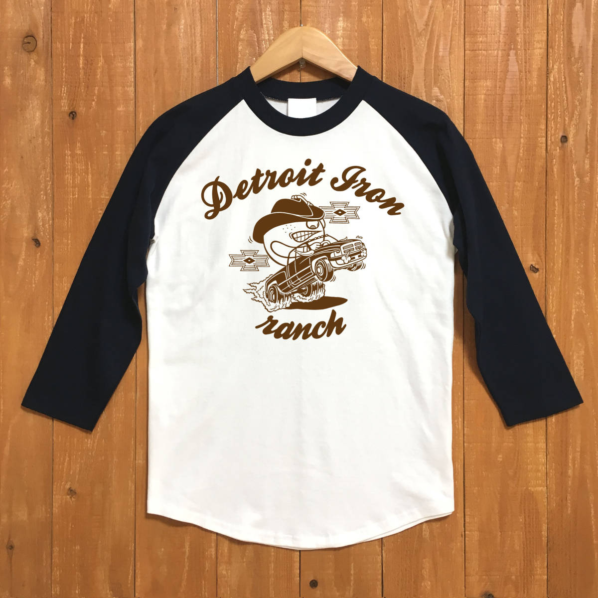 ■ RANCH ベースボールTシャツ■Lサイズ(ネイビー袖xブラウン)DODGE MOPAR ダッジ モパ- ダッジラム