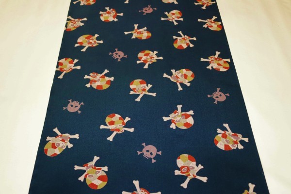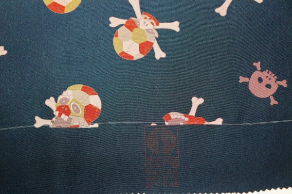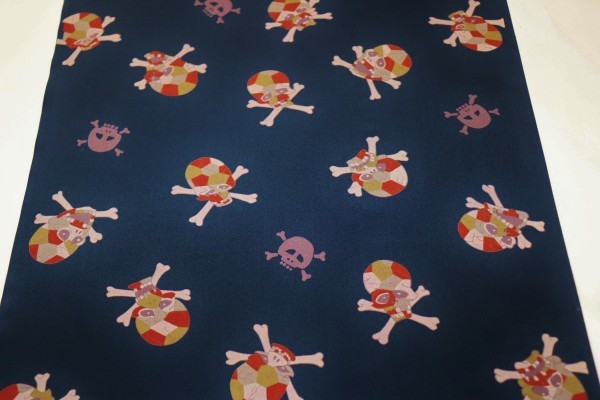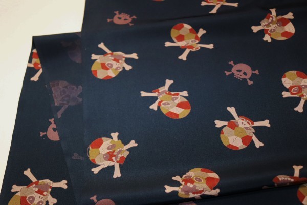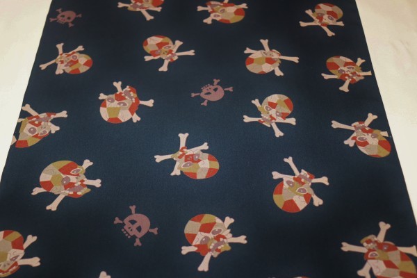 | 【京わぎれ】正絹 長襦袢はぎれ ドクロ文様 濃紺地 うそつき袖・替え袖用 2.2m 男物生地巾約39cm 国産上質生地使用② | ||||