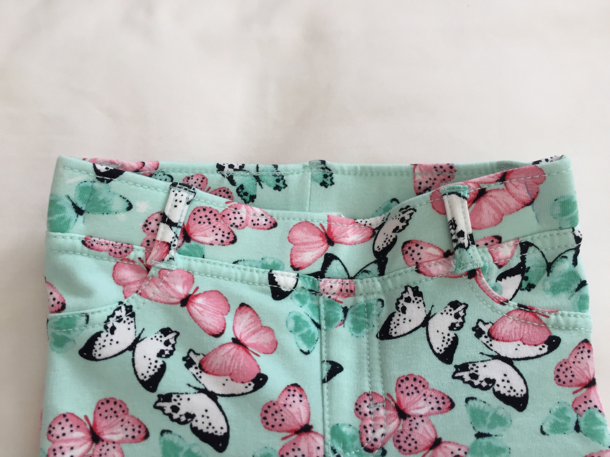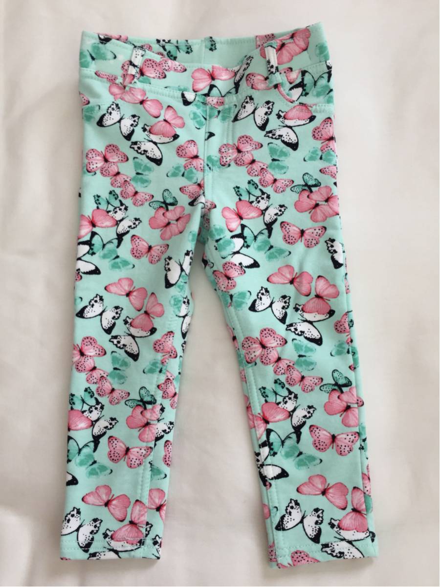 H&M レギンス 10分丈 サイズ90 蝶々 ミントグリーン 購入後未着用ですが、ウエストを写真2枚目のように詰めています。いざ着ようと出したらサイズアウトのため、どなたか着て下さい。