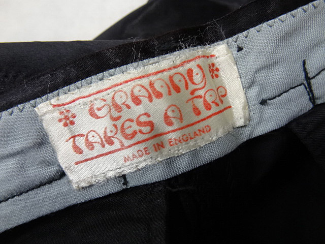 ビンテージ GRANNY TAKES A TRIP 希少 60S イギリス 英国 黒 ブラック 無地 サテン グラム ロック ブーツカット フレア パンツ UK 音楽 色