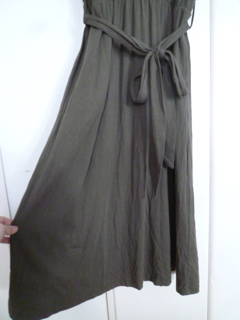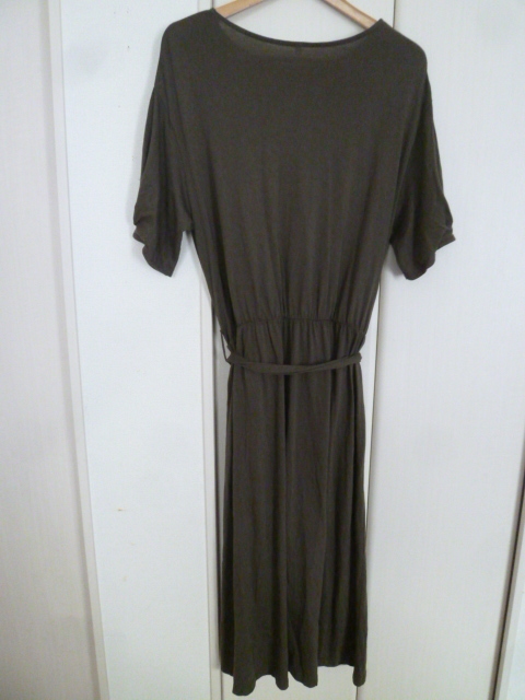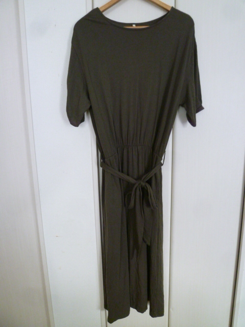 TOPVALU/トップバリュー△深緑カーキ系ベルト付きロングワンピースL/深いグリーン系マキシ丈フレアーきれいめ通勤にも△24