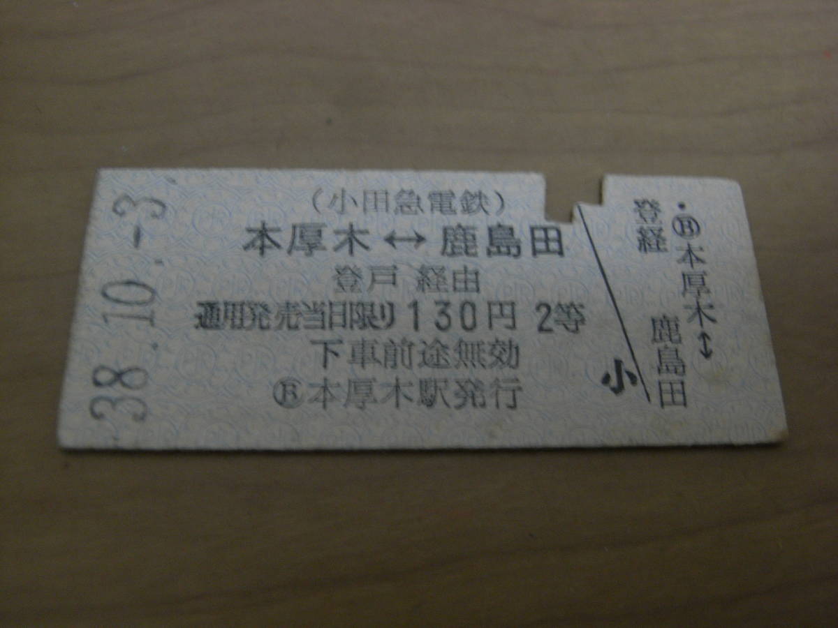 小田急国鉄連絡乗車券 新原町田-鹿島田 登戸経由 90円2等 昭和40年4月6日 新原町田駅発行