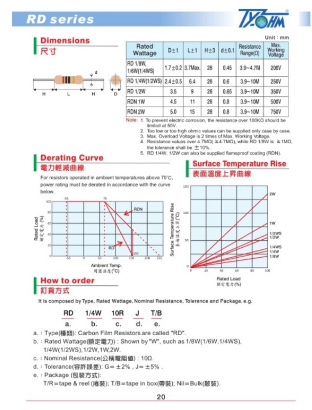 330Ω 1/4W 小型 TY-OHM ELECTRONIC製 RD1/4W 330RJ T/B4 4,500本-[BOX101]