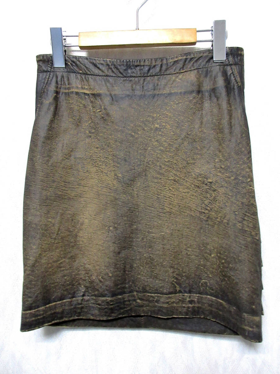 DKNY ダナキャランニューヨーク レザー スカート 茶系 2 北1292