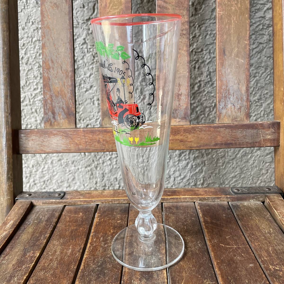 アメリカのアンティークショップで買い付けました 1950年代頃の可愛いグラスです。 絵柄の素敵なグラスですね。欠けやひびなど無く状態は良好です。 サイズは、高さ約21,5cm、口の直径約7cmになります。