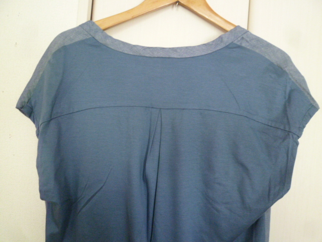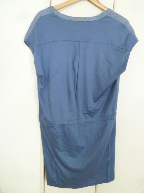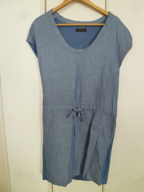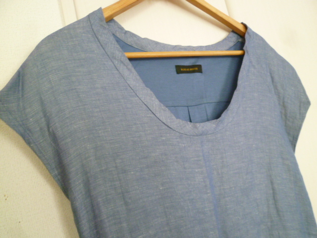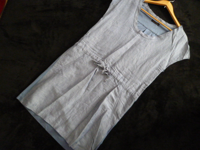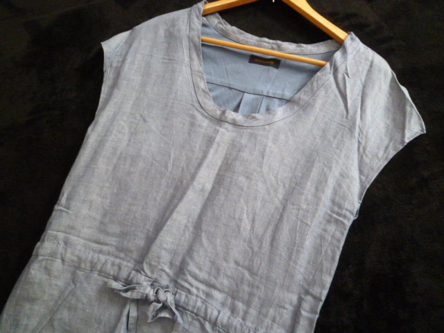 BLUE DE BRESSE/ブルーデブレス△デニム風素材麻混ウエストリボンワンピース/チュニックリネンパームコート膝丈半袖△OP121