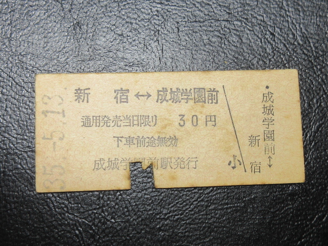 ★国鉄乗車券・硬券『昭和35年5月13日「小田急電鉄」新宿←→成城学園前・30円・矢印式乗車券』キップ切符・レアコレクション★JNR1649