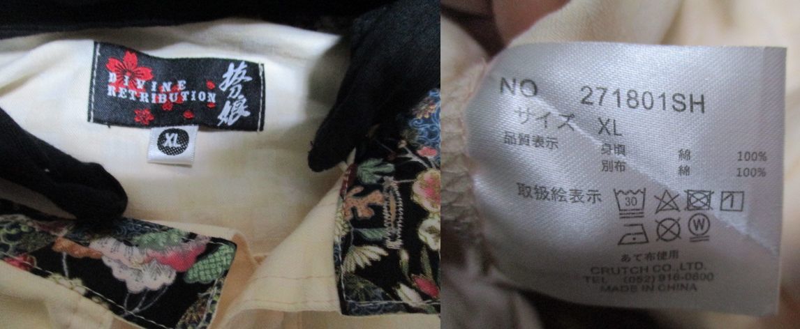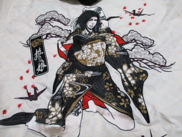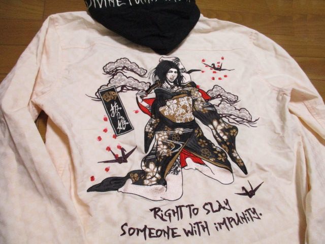 抜刀娘 フード付き XLサイズ シャツジャケット フード脱着可 刺繍 花魁 和柄