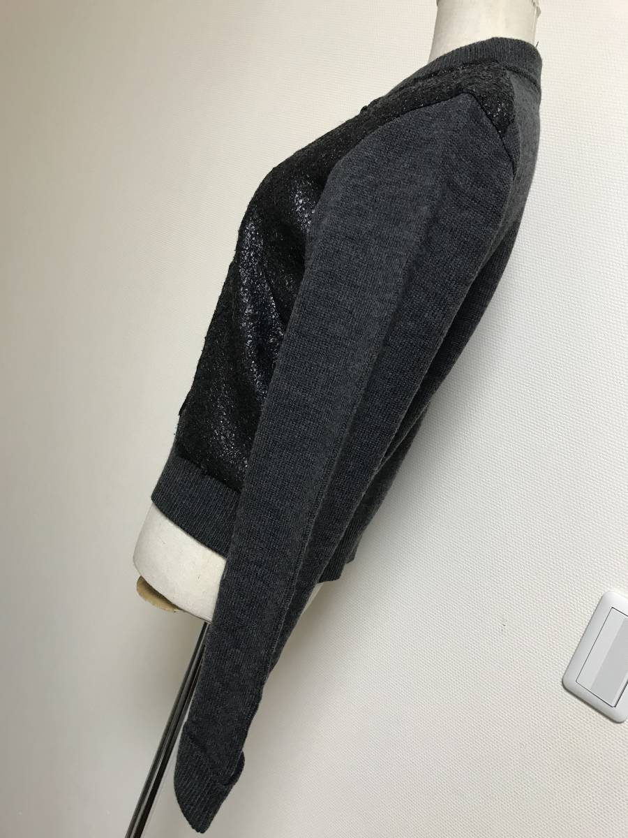 袖・後身頃のリブニットとの異素材ドッキングデザインがとても素敵で、 | ||