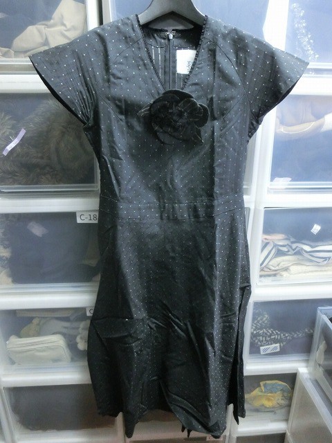 GASA 半袖 ワンピース コサージュ ブラック ひざ丈 ガサ