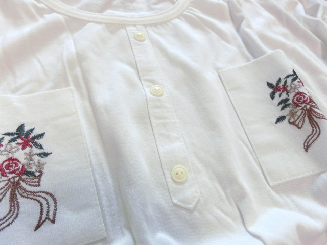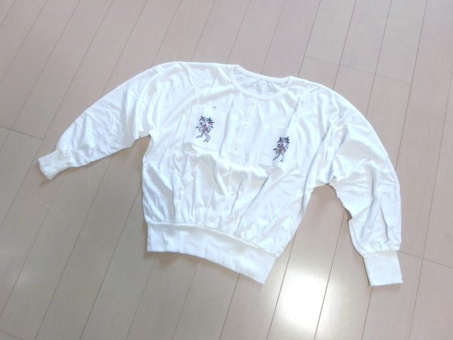 大きいサイズ 長袖 カットソー ラグラン袖 刺しゅう入り ミニポケット