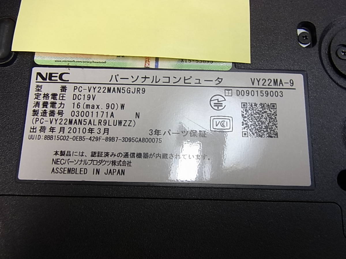 | 商品情報 | NEC 15.6型ノートパソコン VY22MA-9 PC-VY22MAN5GJR9 HDD/メモリなし |