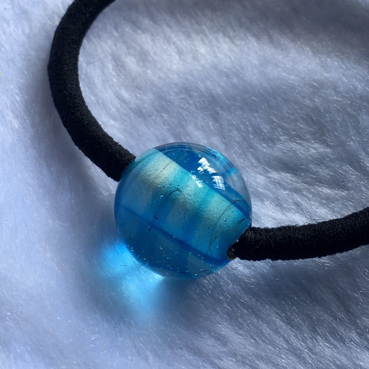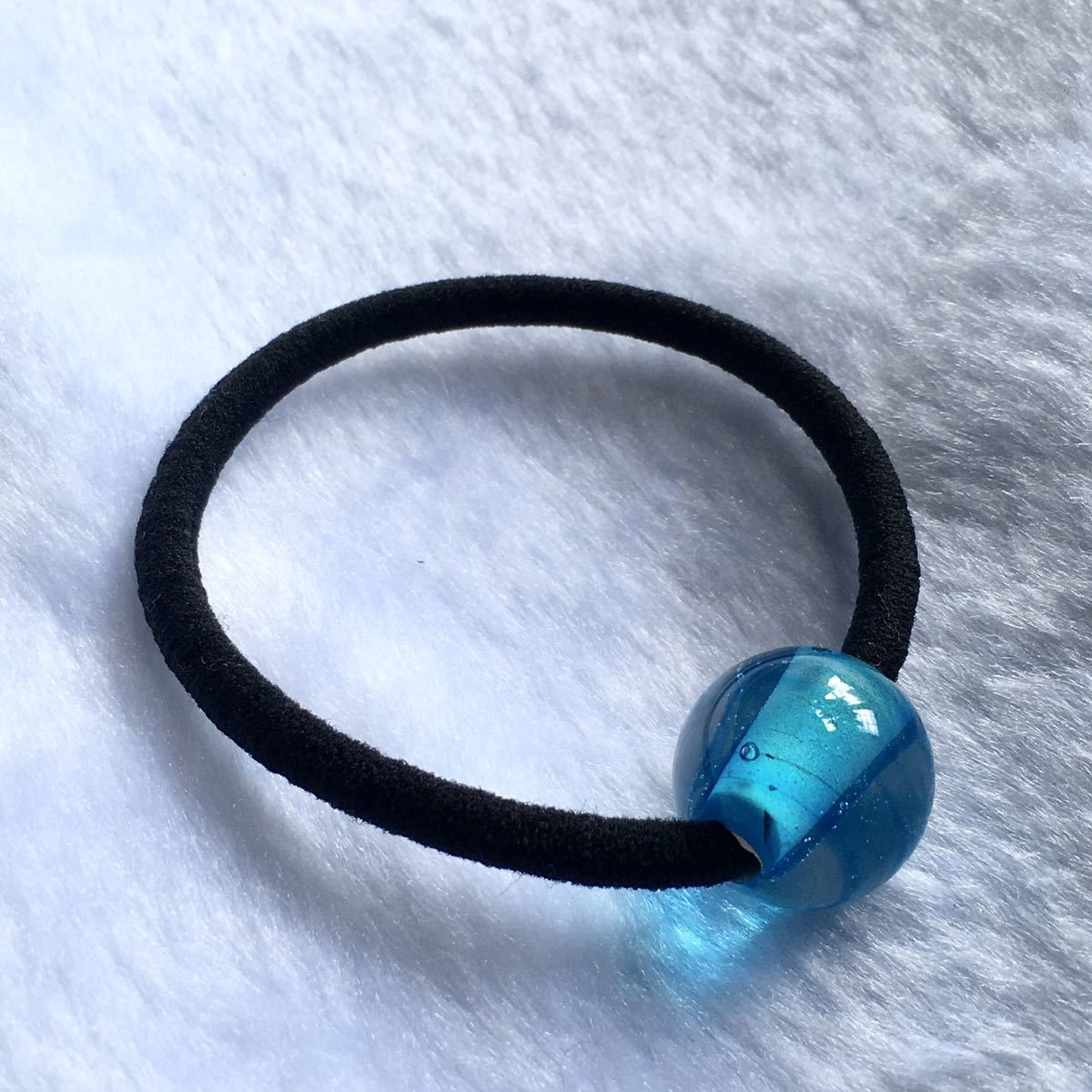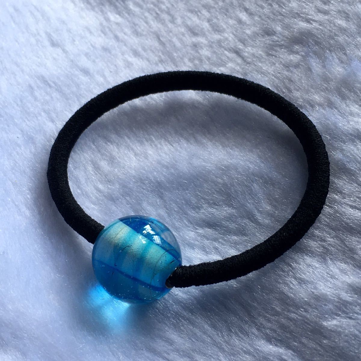 手作りのとんぼ玉をあしらった髪ゴムです。