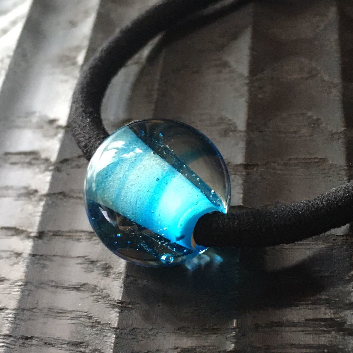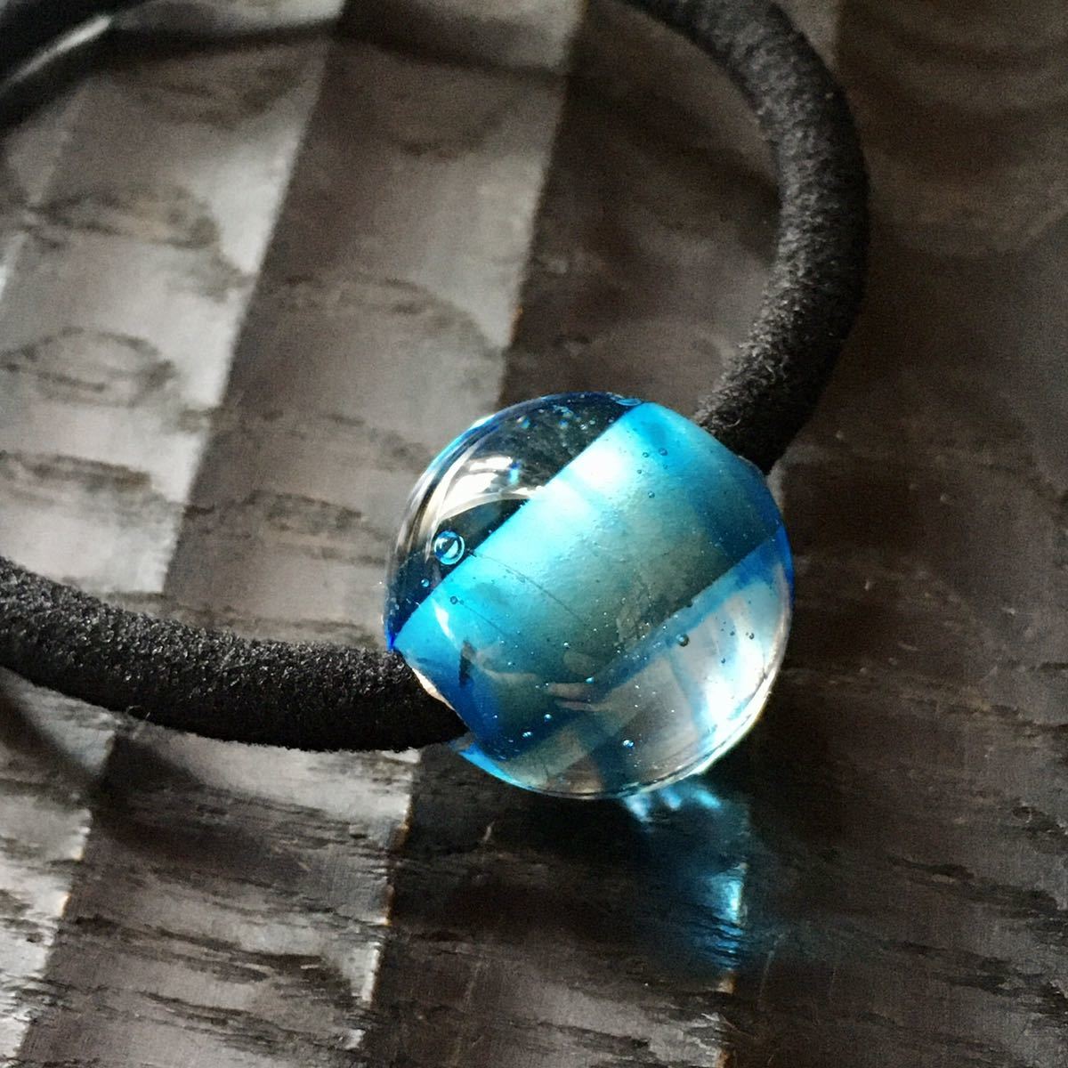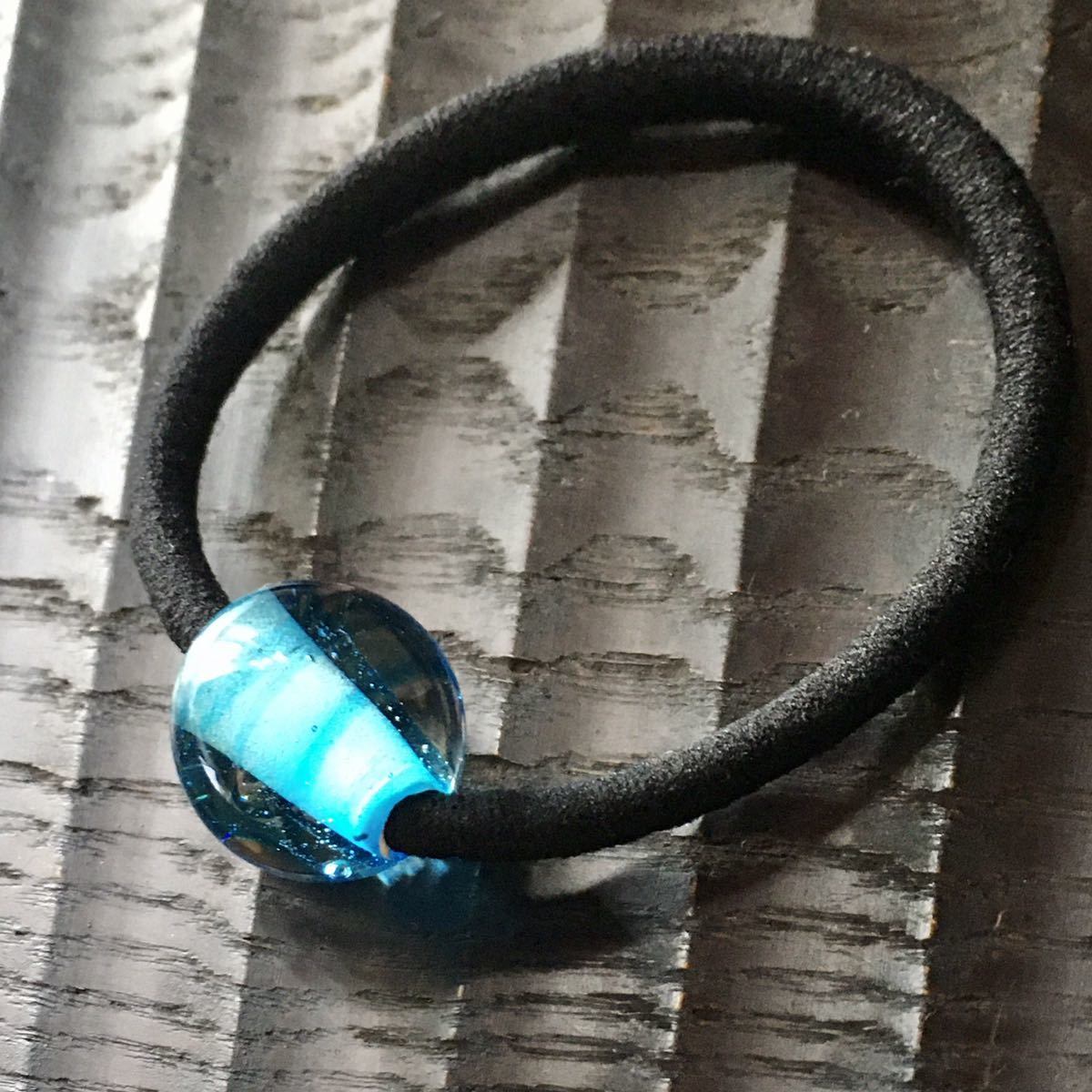 手作りのとんぼ玉をあしらった髪ゴムです。