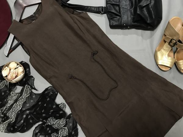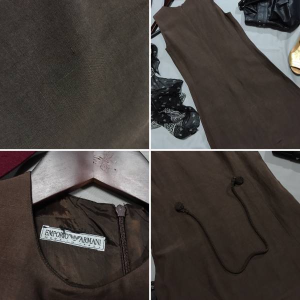 ★シルク混★EMPORIO ARMANI エンポリオアルマーニ★デザインリネンワンピース★ブラウン★size38 |