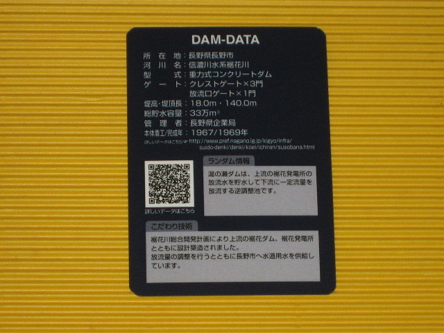 即決 ダムカード  長野県 長野市信濃川  湯ノ瀬ダム  ver1.0(2014.8)