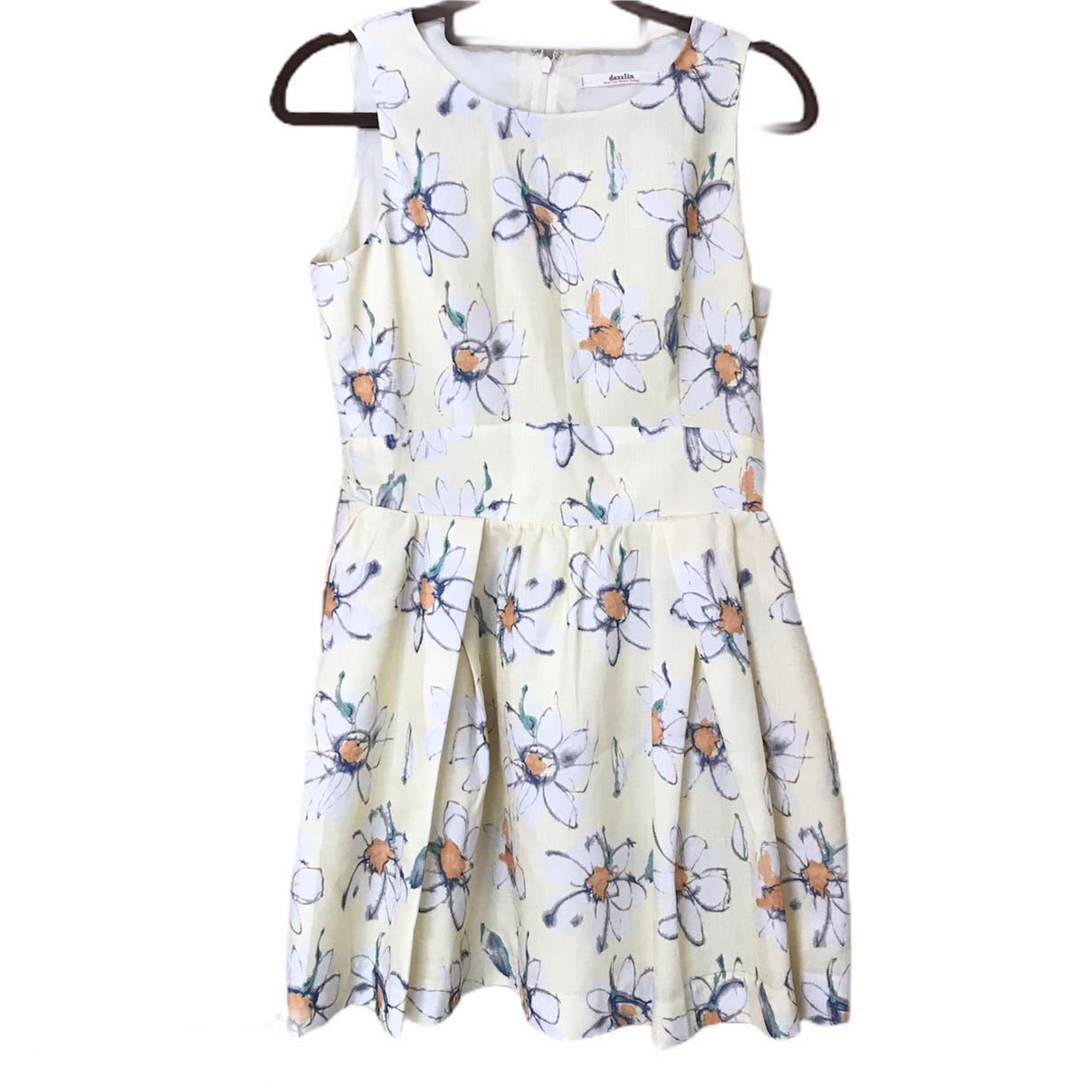 大きなお花が全面に施されたdazzlinのノースリーブワンピース。