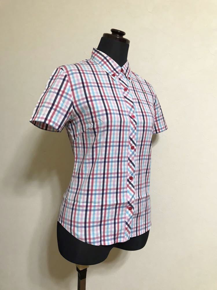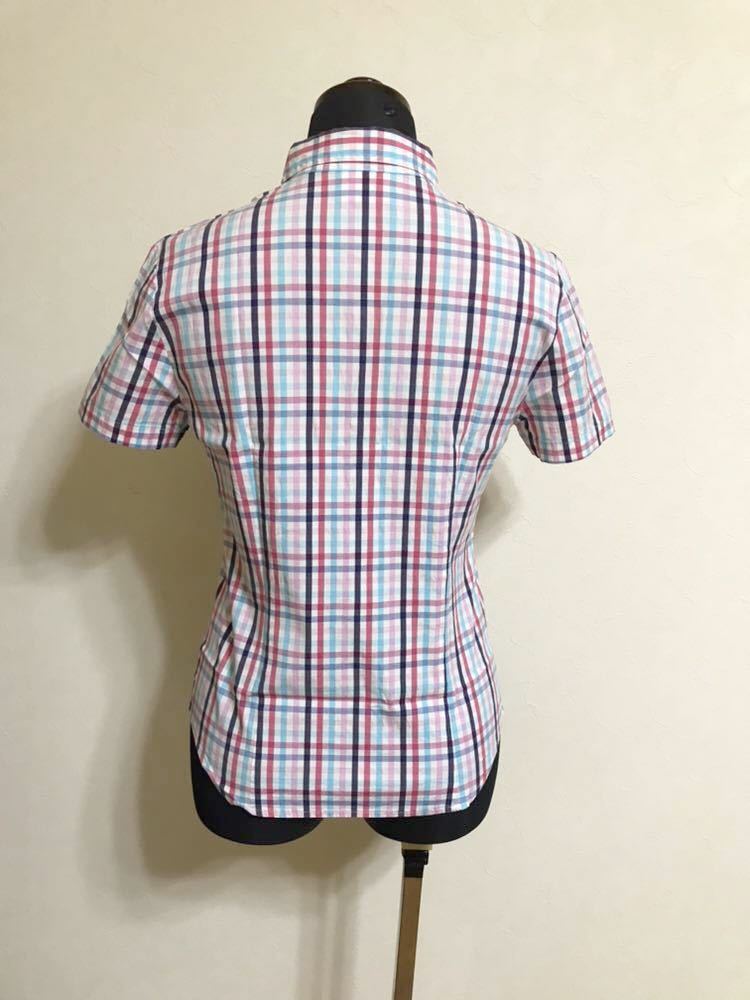 *サイズ38 半袖 レディース 綿95% ポリウレタン5% 白水赤桃チェック柄 ファブリカ 型番:CF785S