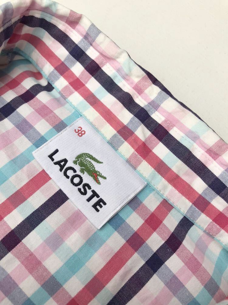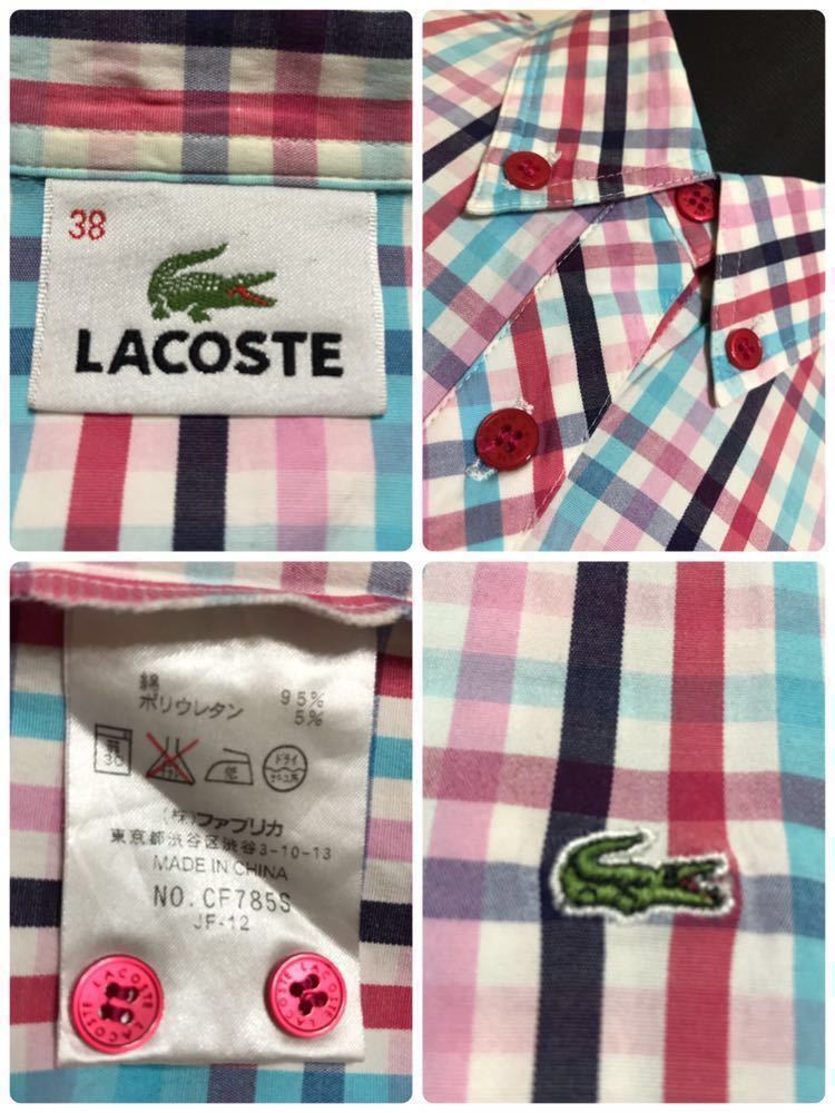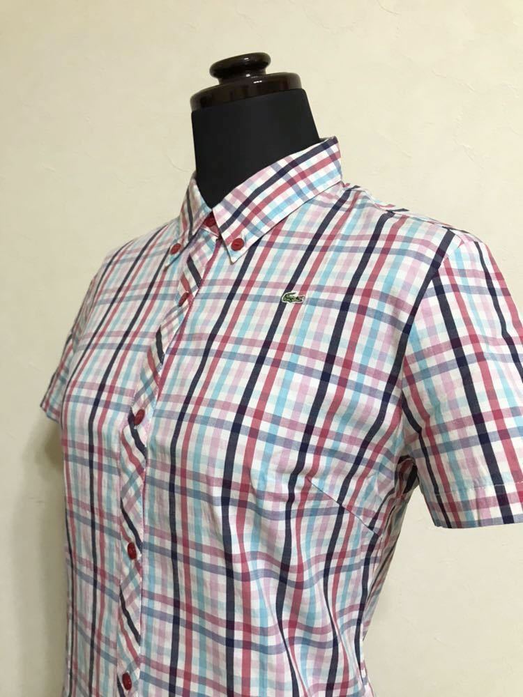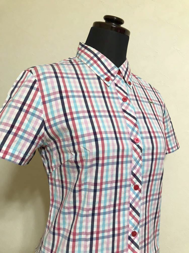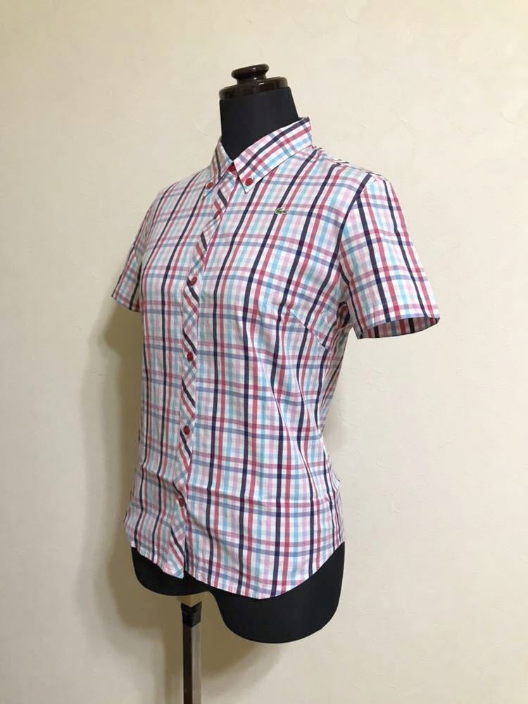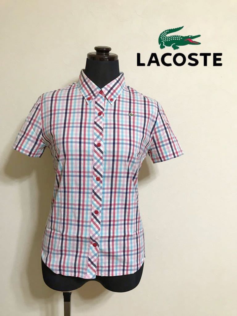 LACOSTE ラコステ レディース チェック柄 ボタンダウン シャツ トップス 半袖 サイズ38 ファブリカ CF785S