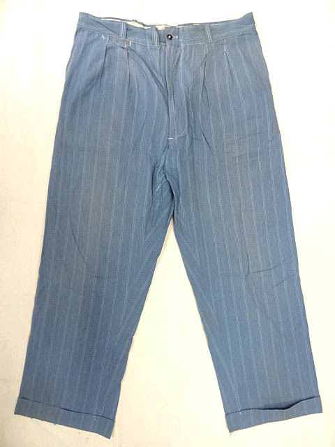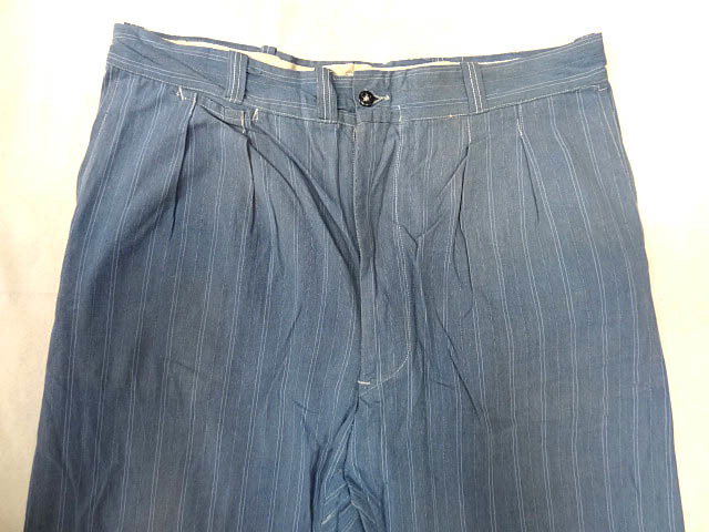 ビンテージ 希少 珍品 50S 前後 同デザイン ポケット ストライプ シャンブレー タック ワーク スラックス パンツ 白 ホワイト ブルー レア