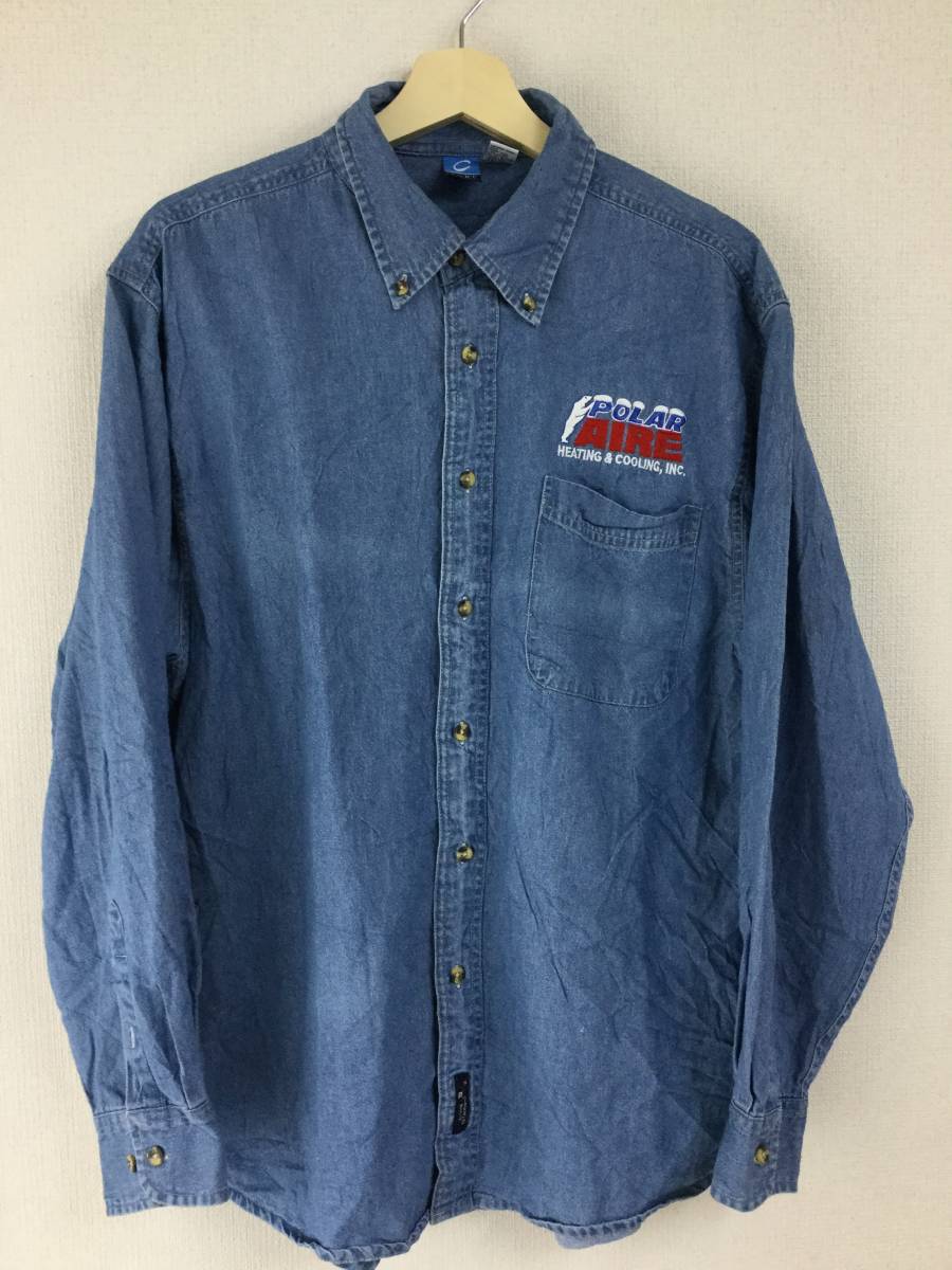 90s PORT AND COMPANY デニムシャツ 企業モノ Mサイズ POLAR AIRE