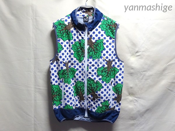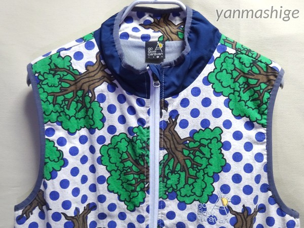 ほぼ新品 ゴースローキャラバン ブルー/ドット総柄スタンドリネンベスト L go slow caravan アウトドア フェス ポルカ | ||