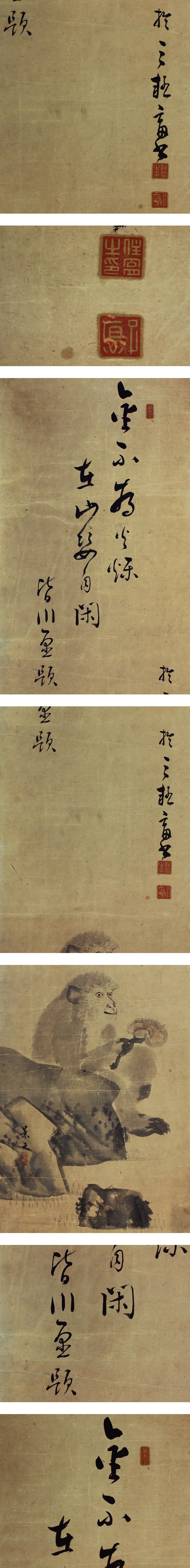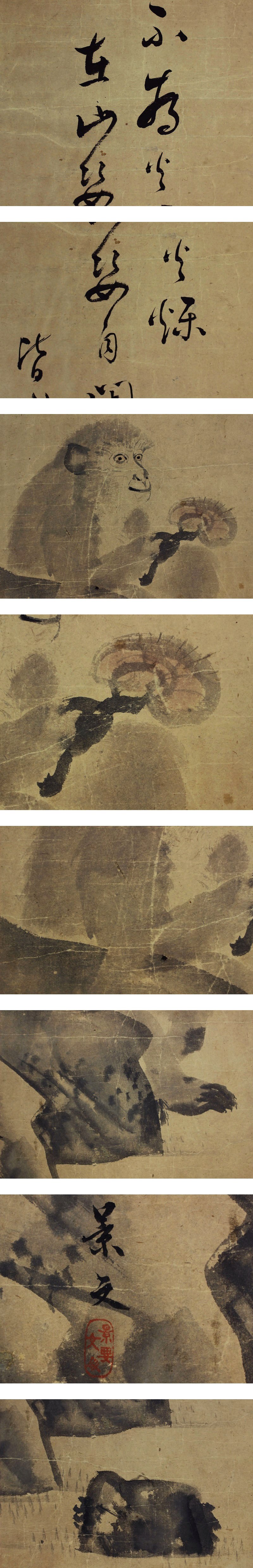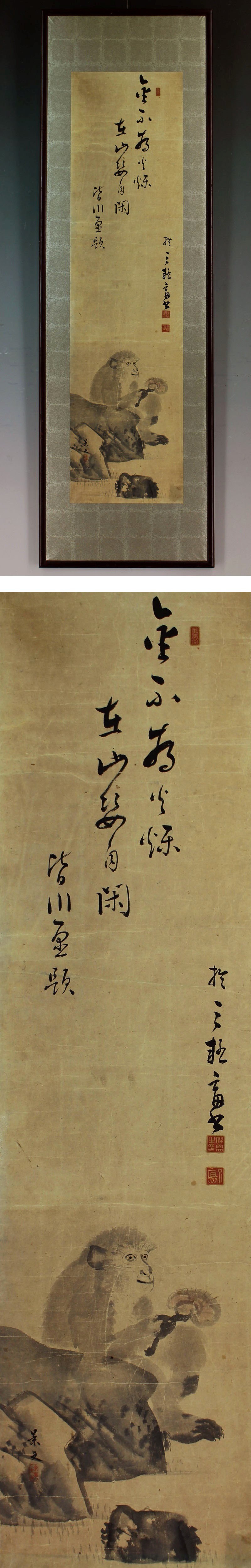 | №1802022c【真作】松村景文 皆川淇園合作【猿に霊芝】◆紙本◆額 | |