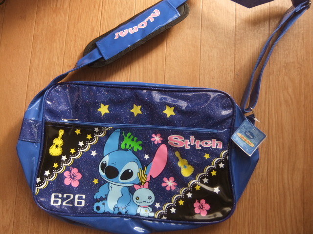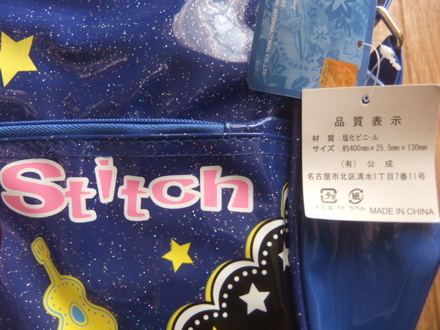 新品タグつきの、リロ&スティッチのビニールショルダーバッグです。