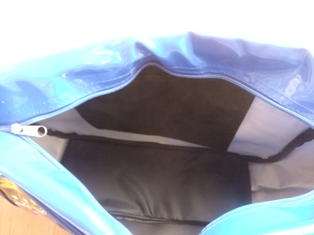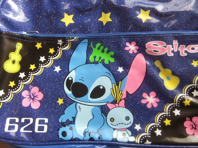 表地は紺色地にラメを散らし、スティッチのプリント付