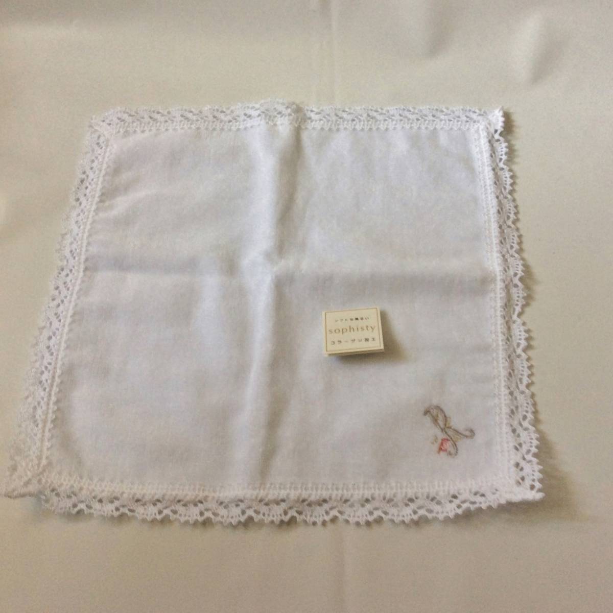 新品タグ付き 百貨店商品 コラーゲン加工 タオル ハンカチ 日本製