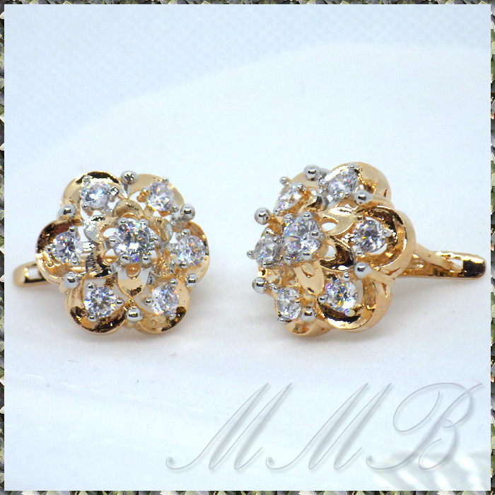 Rose Gold Plated 7Cz Flower セブン クリスタルCZ ビューティフル フラワー ローズゴールド U形 リング ピアス です。