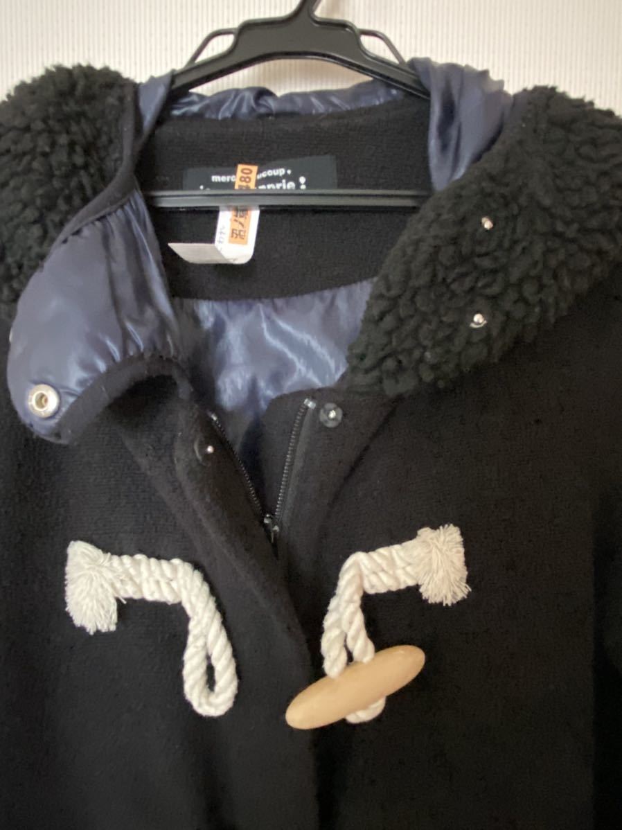 クリーニング済み美品◆jevous enprie! フリース×ボア ダッフルコート◆黒◆メルシーボークー