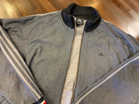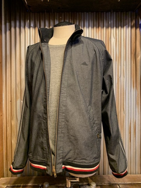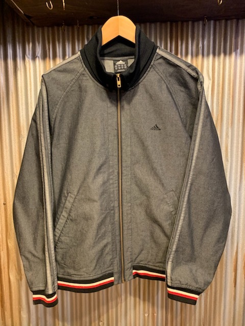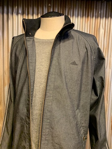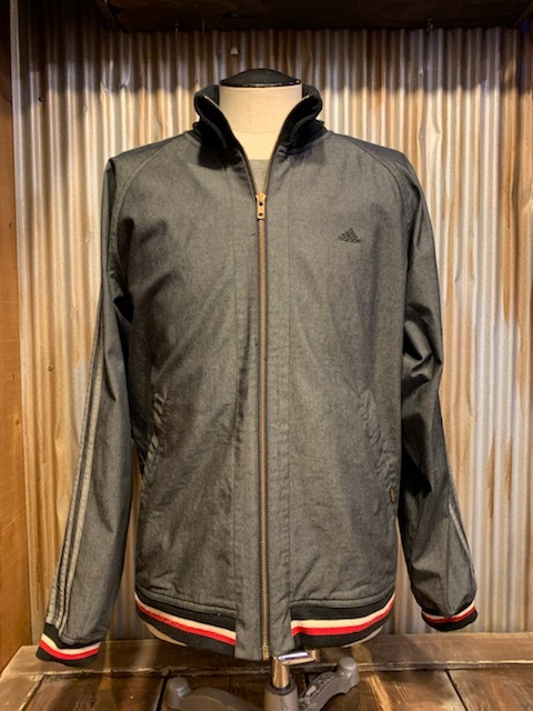 I544 メンズ ブルゾン スポーティー ♪ adidas アディダス グレー ジップアップ ジャケット 薄手 リブ ロゴ (8)/ M