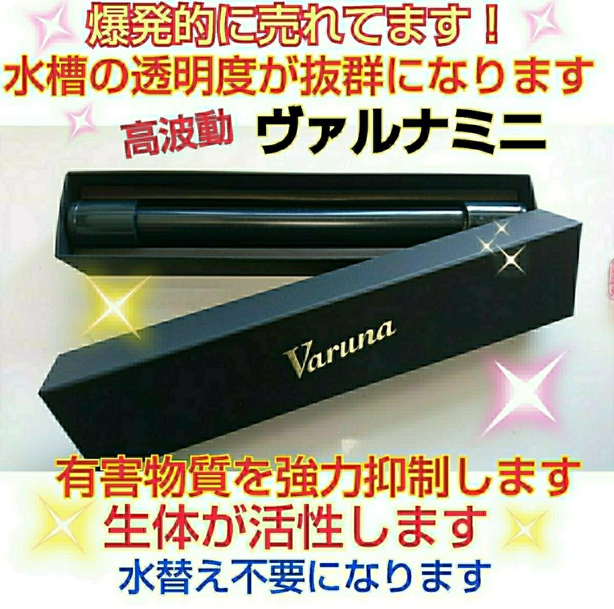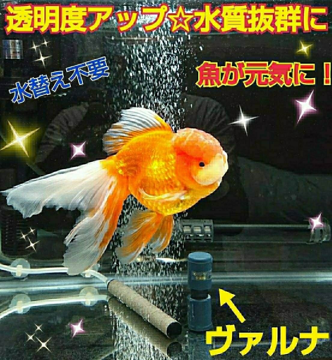 | ヴァルナは波動のパワーで水質を安定にし、好気性バクテリアを安定させ水の濁りがなくなりメンテナンスが非常に楽になります。 水槽に入れるだけなので簡単です!! ドモホルンリンクルの再春館製薬研究所が水槽の水を使いヴァルナの水質検査実験をしたら有害物質が激減する結果がでました。 商品には絶対の自信がありますので購入後も満足いくまでサーポー致します。 偽物にご注意下さい。 こちらは正規販売店ですのでアフターサービスもバッチリです。 | ||