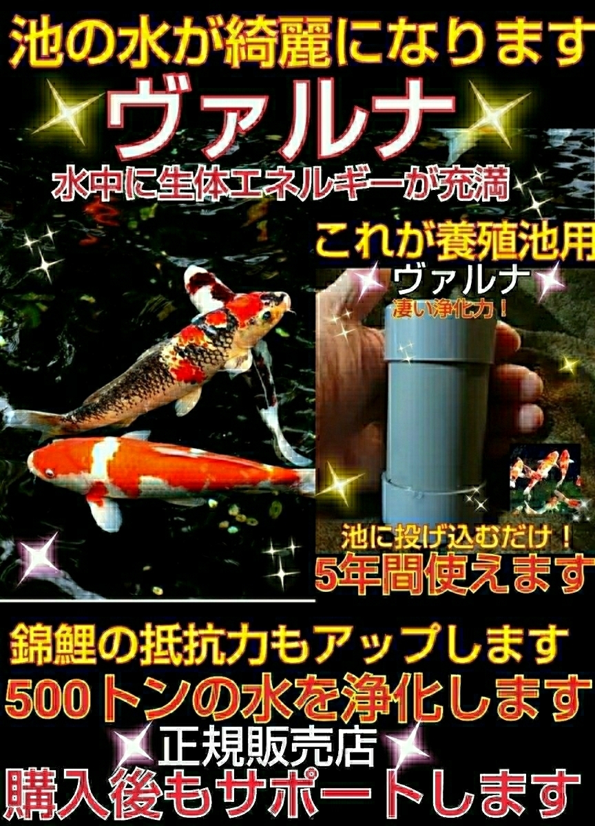| 家庭用水槽はこの3種類です。 500トンの水を浄化する養殖池用もあります。 養殖池用は元々は業者さんに54000円で販売していましたが個人や家庭で購入しやすいように今は限定で33000円で販売しています。 5年間使えます。 またさらにパワーが強い特大サイズ ヴァルナをご希望の方はご連絡を頂ければご対応致します。 大きいほどパワーが強く浄化スピードも早いです。 何個でも同封発送できますのでご希望の個数とサイズをご連絡下さいませ。 | ||