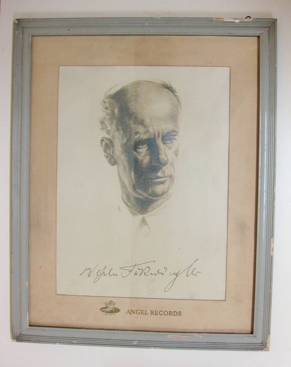 昭和レトロ フルトヴェングラー 肖像画 パネル 壁飾り 当時物 木製フレーム 額縁 ANGELRECORDS クラシック 指揮者