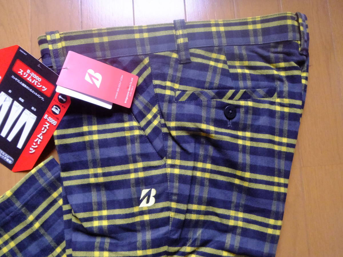 ブリヂストン 79 冬用 黒×黄色チェック ストレッチ スリム ウエストストレッチ ゴルフパンツ B-2000EGM14K  新品 定価 14500