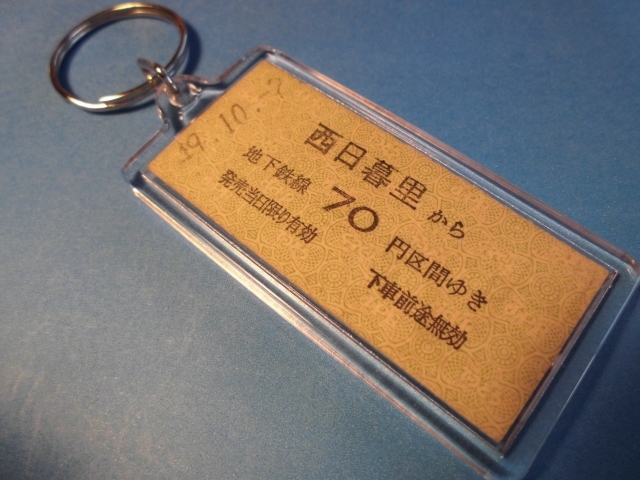 ◎【本物の硬券キーホルダー】千代田線・西日暮里→70円(営団地下鉄時代) No.1986