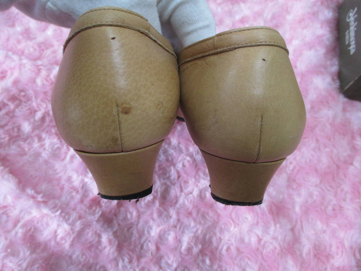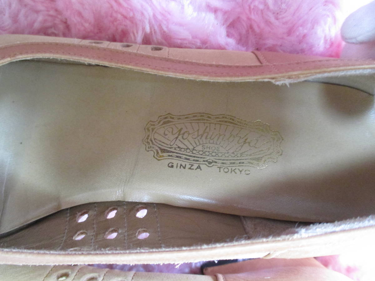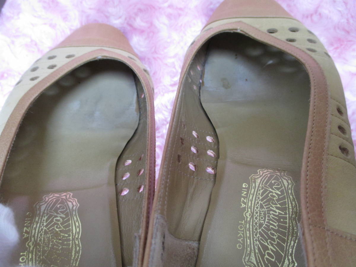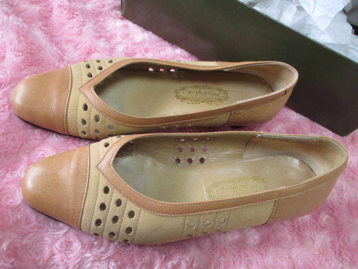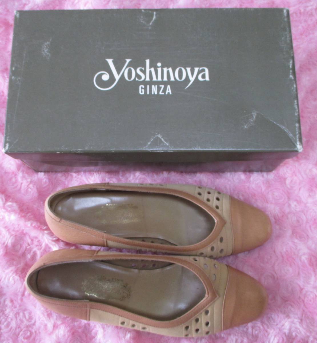 やや使用感あり 数回着用品です。中古品 ベージュ色でおしゃれな穴あきパンプス 銀座ヨシノヤ 高級感のある皮革製で、バックスキンとなめし革のコントラストです。 サイズ22.5cm 箱無し発送です。