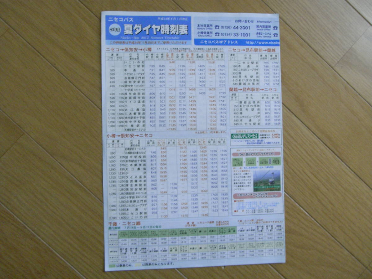 ニセコバス 24年度夏ダイヤ時刻表 平成24年4月1日改正
