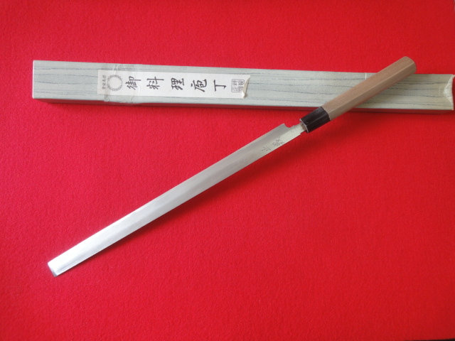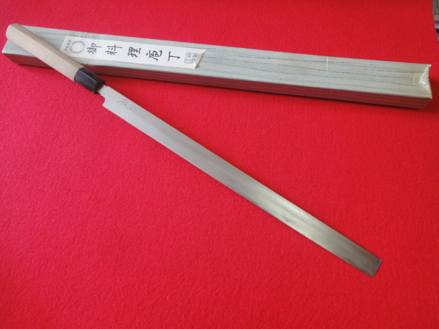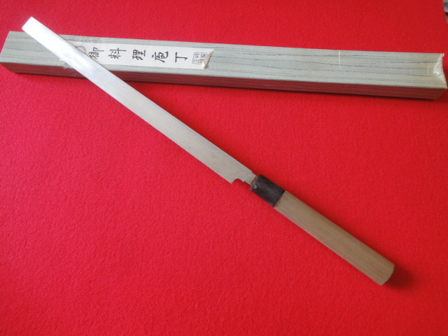 【正義】刺身包丁 ※蛸引 刃渡32.7㎝ 全長48.5㎝ 峰厚4.1㎜ 片刃 ※箱付 ※中古品 ※全国一律送料1100円