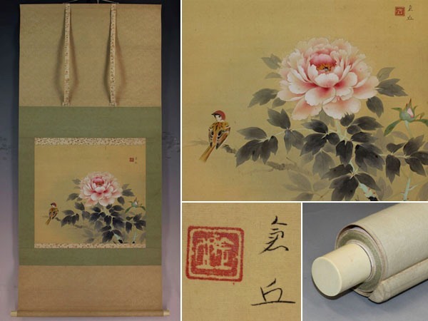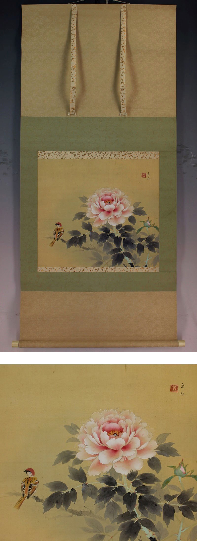 | №1911126【真作】山本倉丘【富貴花】◆絹本◆共箱◆掛軸 | |