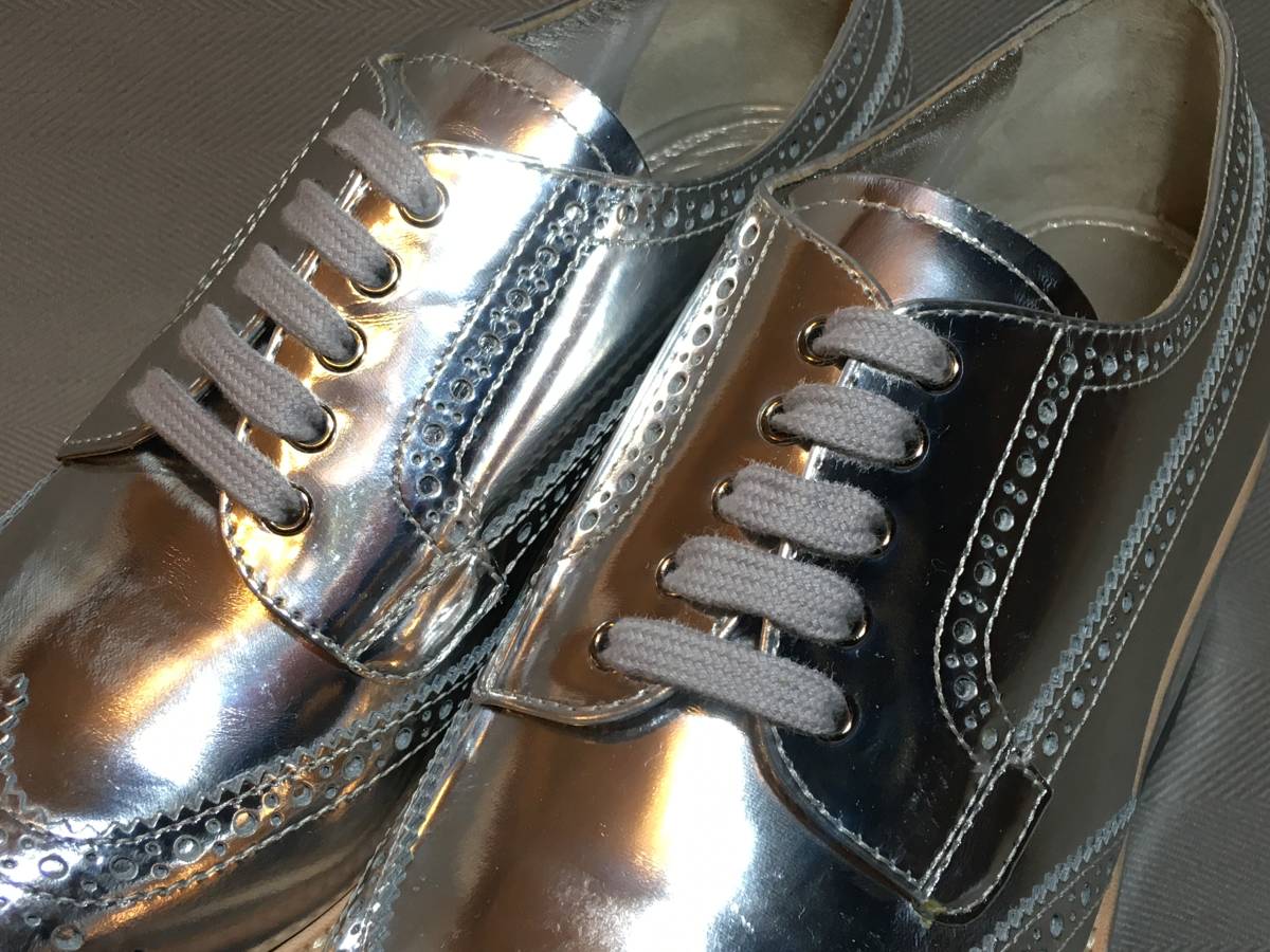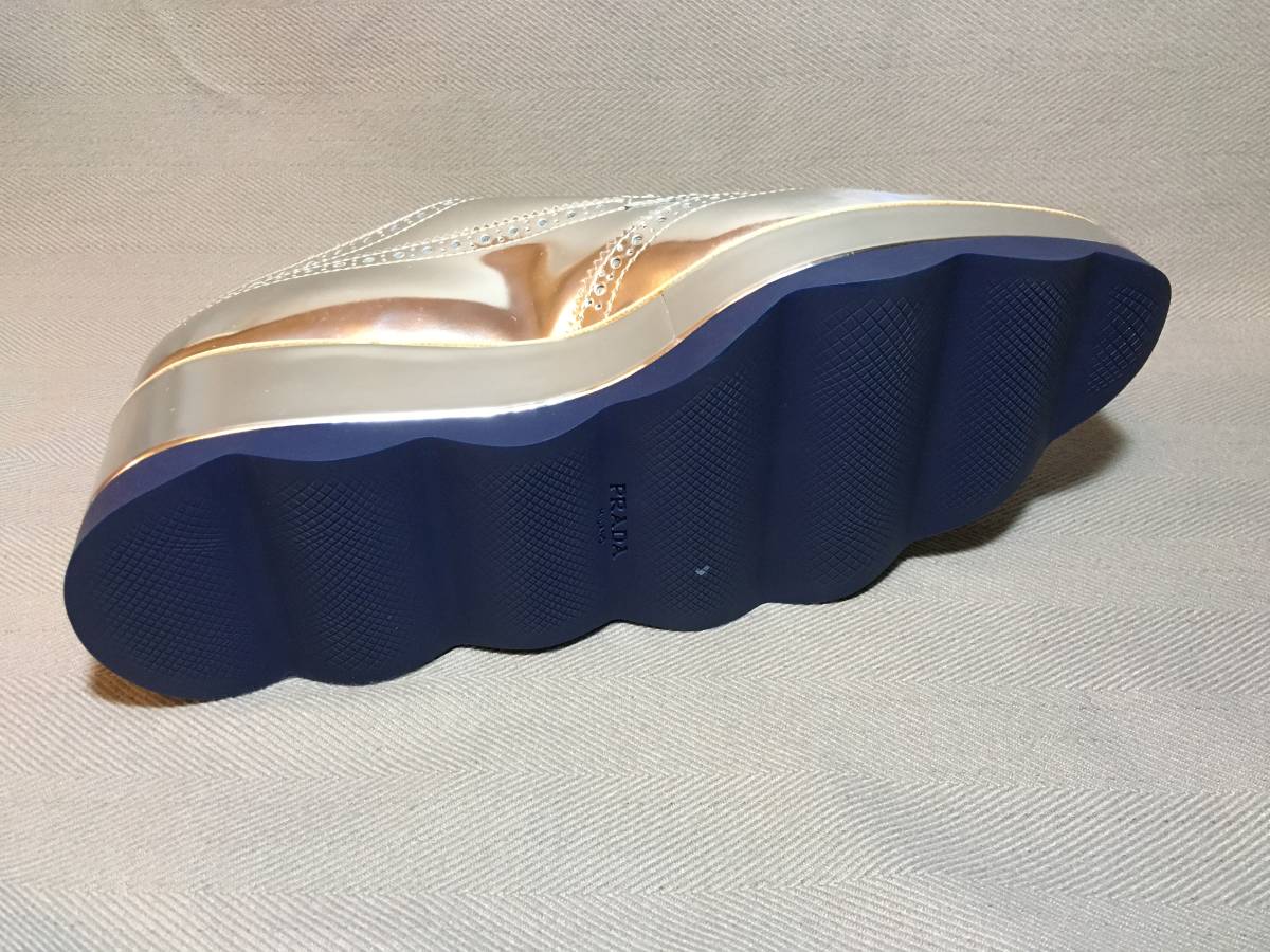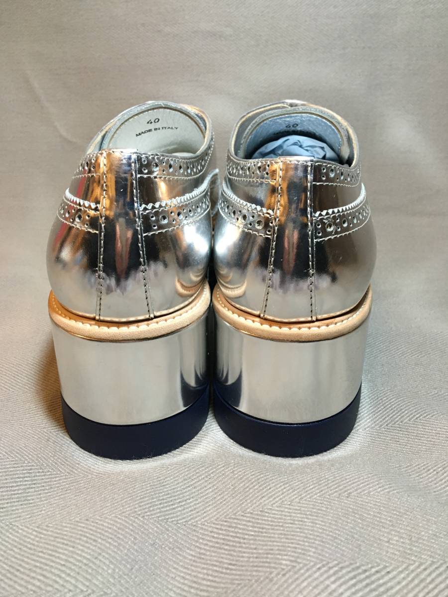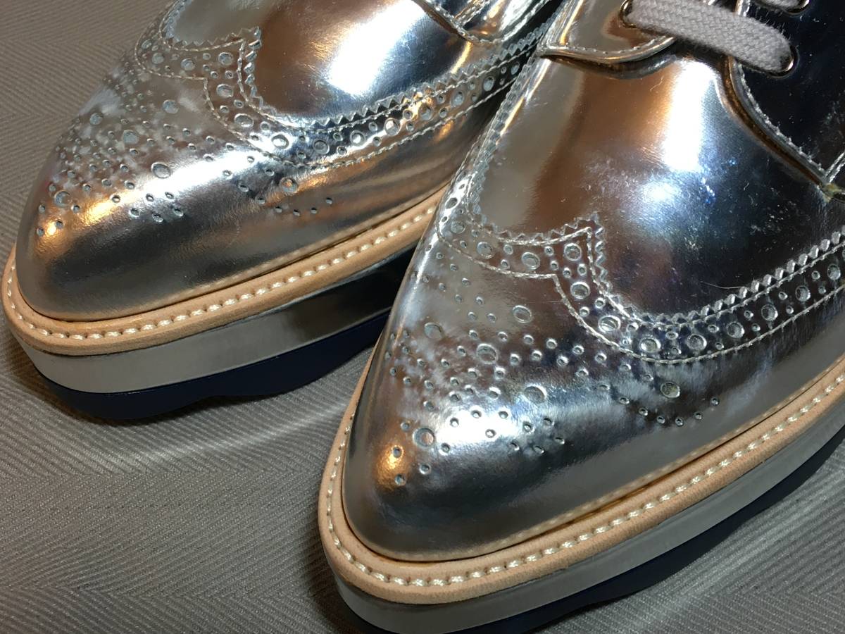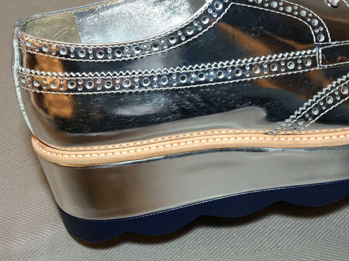 新品 本物 PRADA プラダ ウイングチップ 厚底 レザー シューズ 40 シルバー ネイビー イタリア製 ドレス シューズ 靴 革 パンプス b